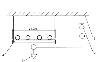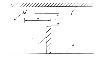 1—天花板或屋頂;2—噴頭;3—障礙物;4—地板